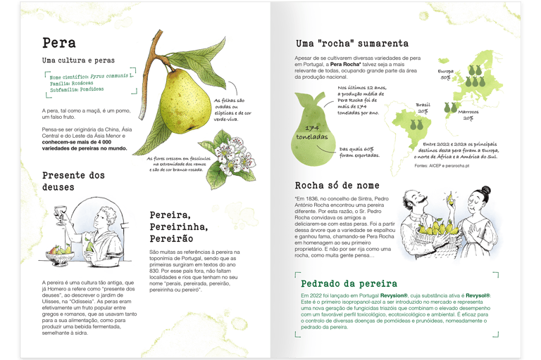 The project combined deep research, the selection of historical, agronomic, and cultural tidbits, editorial writing by Cristina Nobre Soares and Inês Roque, illustration, and layout.