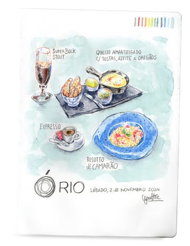 Num almoço de última hora, visitei o restaurante Ó Rio, no Barreiro, e felizmente tinha comigo algum material de desenho. Como é habitual, fui intercalando o desenho com a refeição, numa corrida agradável para o terminar no local.